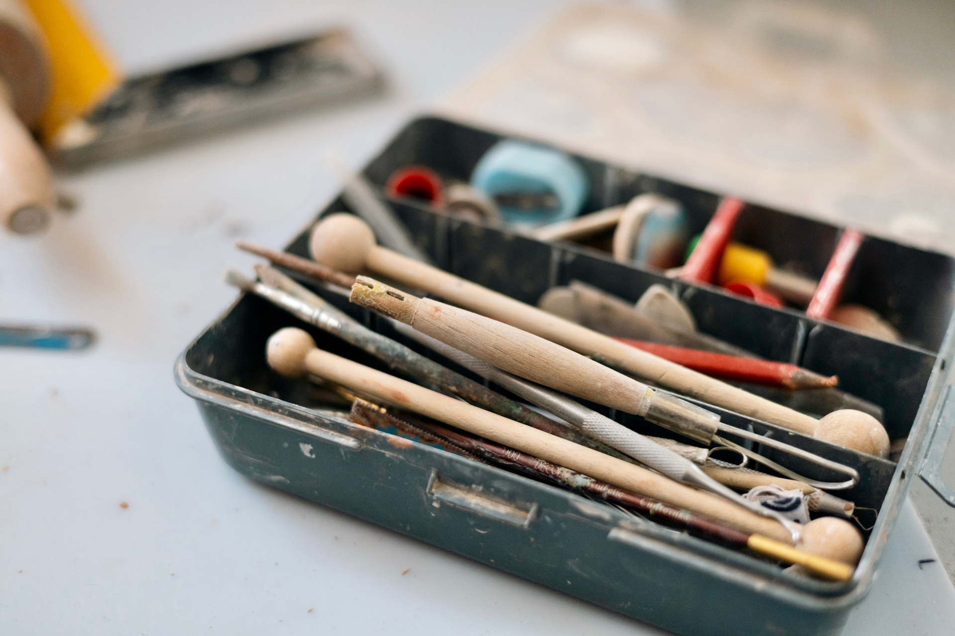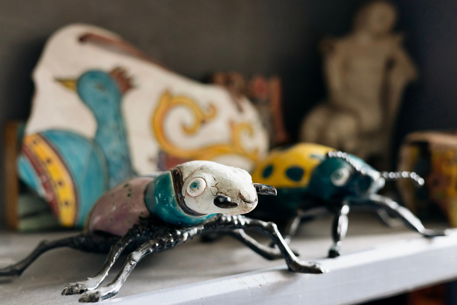 Мы встречаемся с Катей в художественных мастерских — трехэтажном кластере на улице Омской в Челябинске, созданном еще в советское время для мастеров разных направлений. В каждом помещении большие панорамные окна и высокие потолки. Когда Катя с мужем Сергеем Колесовым только перебрались в Челябинск, они одно время жили прямо в мастерской — оптимизировали пространство, организовали второй этаж с полками для картин и спальным местом. А на первом этаже сделали рабочее пространство.