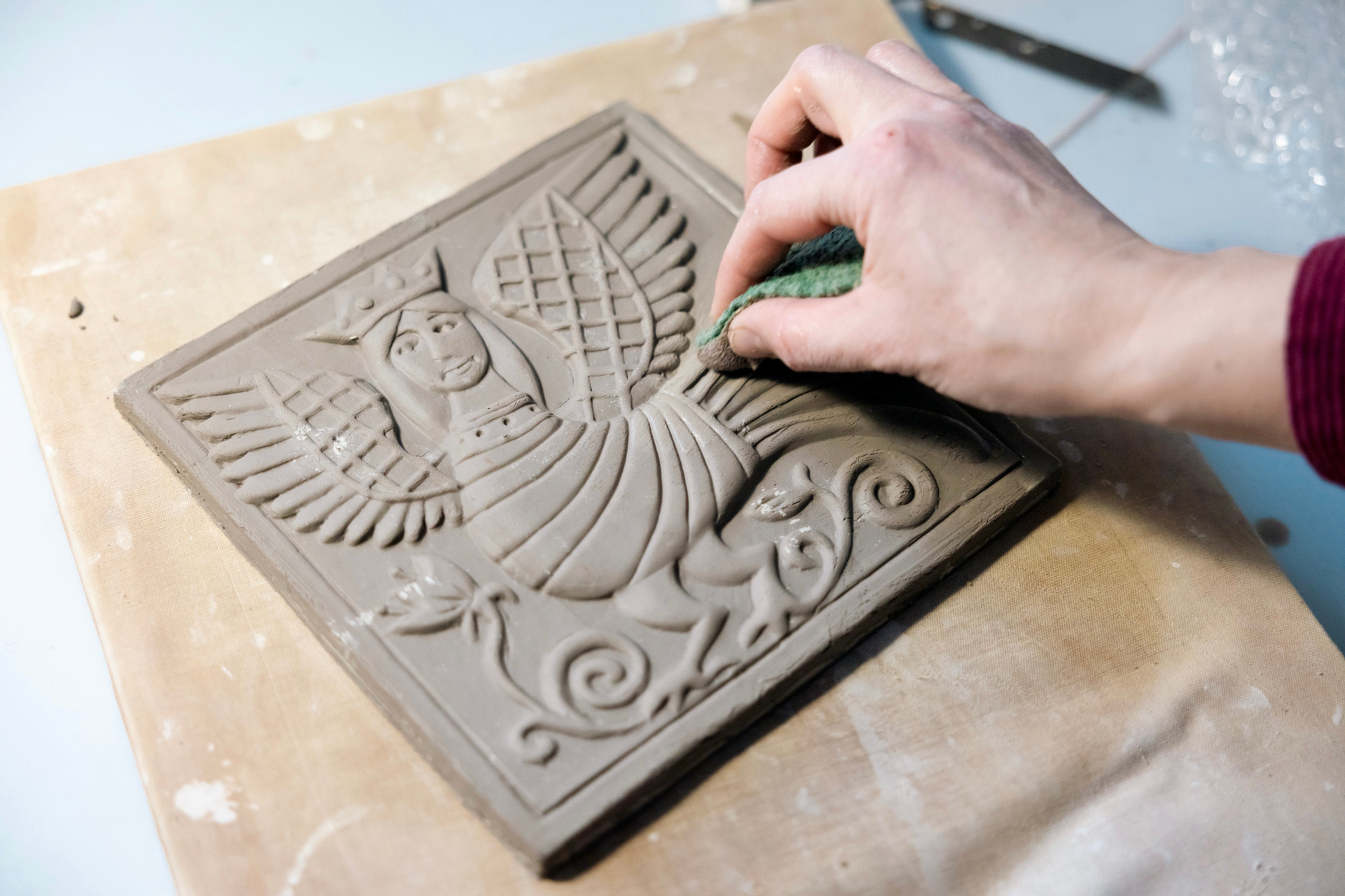 «Когда часть проекта была выполнена, началась СВО. Я использую в работе испанскую глину, другие материалы — тоже импортные. Начались санкции, и было проблематично купить материалы. Заменить глину было нельзя, потому что часть изразцов уже была готова, и с другой массой была вероятность не попасть в нужные параметры. В итоге при помощи своих друзей мы справились с задачей и достали все-таки нужные материалы».