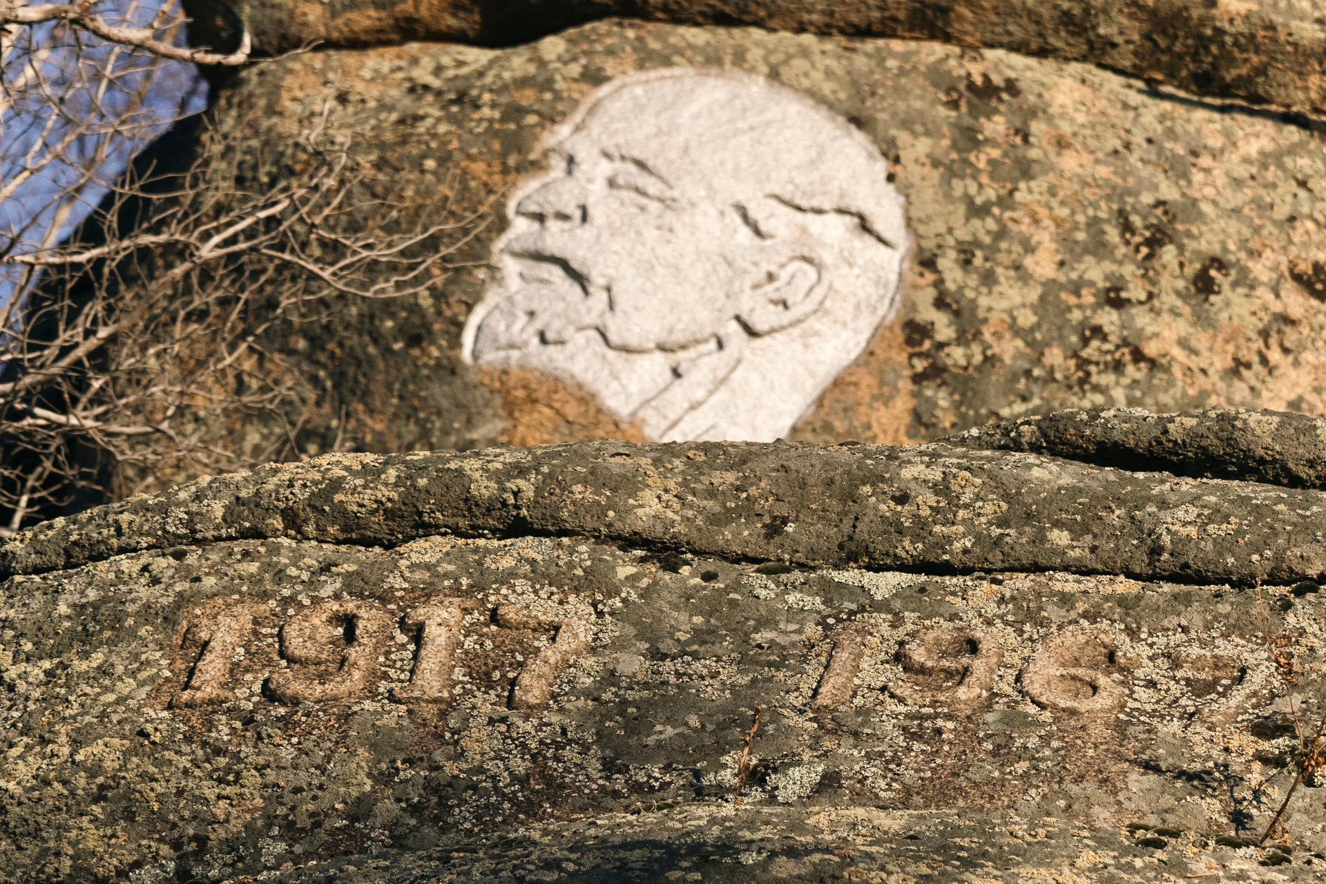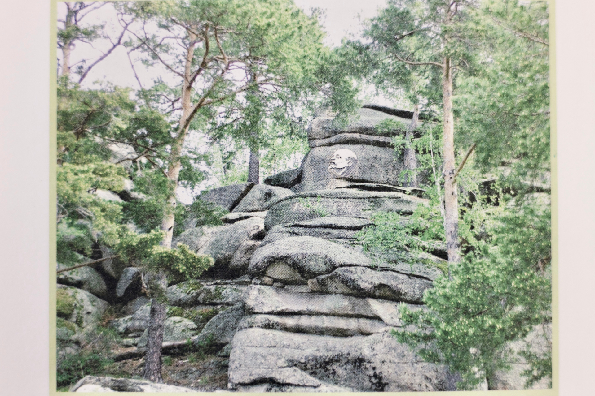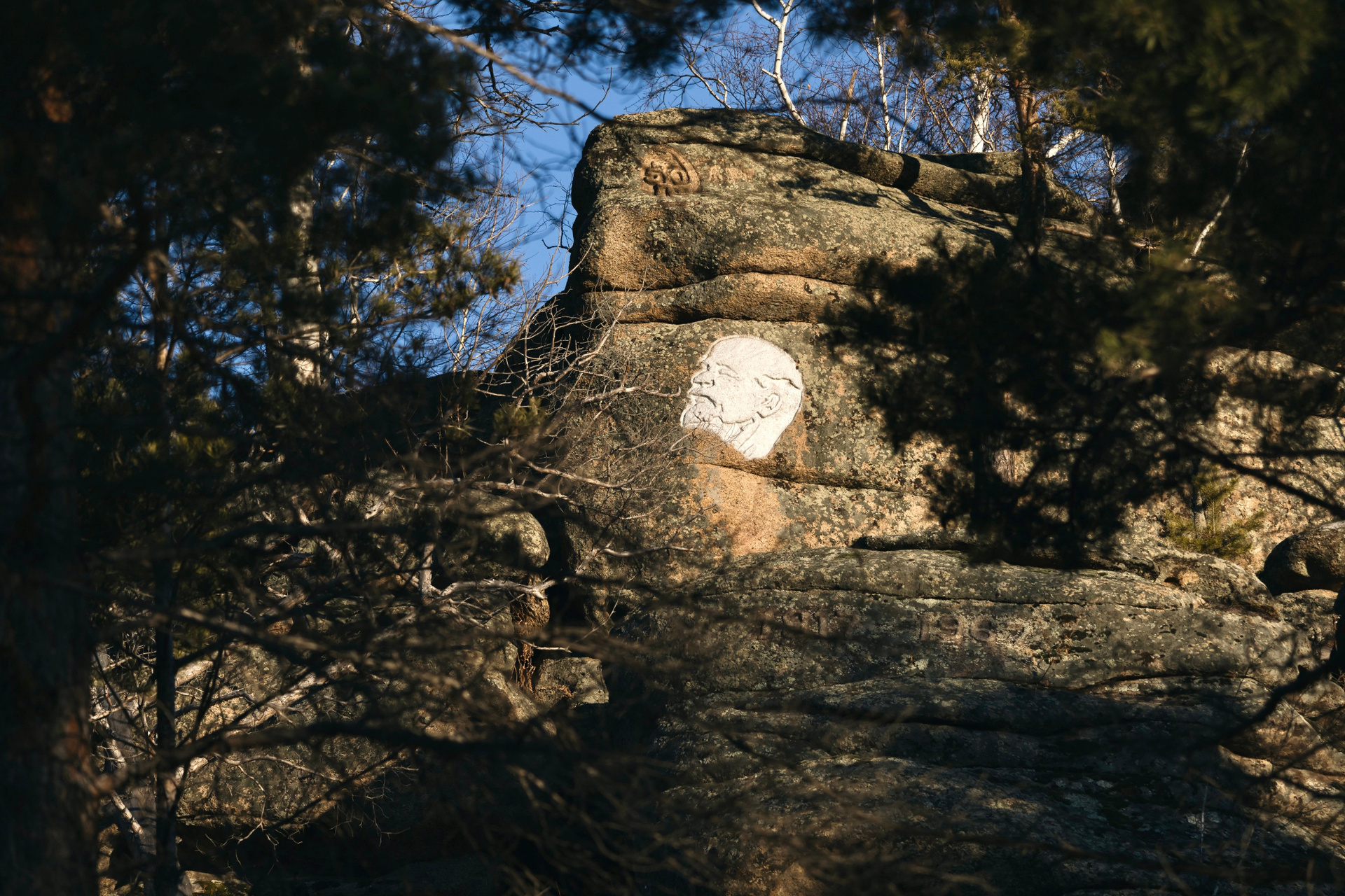 Родные рассказывают: на самом деле изображение Богородицы было не первой работой Евгения Тележкина. Еще в 1967 году, к 50-летию советской власти, он сделал на сопках барельеф Ленина, и это место в советское время для жителей было культовым. Сейчас доехать до сопки с Лениным уже не получится: территория относится к Санарскому заказнику, и лесники тщательно следят, чтобы чужого транспорта там не было. Зато можно дойти пешком, от трассы до нужной точки — меньше двух километров. Ленинская сопка, кстати, в несколько раз выше человеческого роста, и если до профиля вождя дотянуться не проблема, то с надписями Евгению Тележкину приходилось работать на приличной высоте.